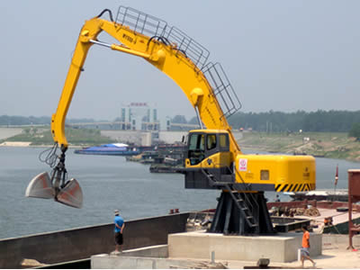 WYS50-G型電動(dòng)液壓固定式疊臂抓料機(jī)的回轉(zhuǎn)、卷揚(yáng)、變幅及抓斗開閉作業(yè)等全部采用電動(dòng)液壓驅(qū)動(dòng),先導(dǎo)控制。具有作業(yè)平穩(wěn)、各動(dòng)作可無級(jí)調(diào)速;同等作業(yè)效率下可比內(nèi)燃機(jī)驅(qū)動(dòng)節(jié)省60%能耗;司機(jī)室安裝冷暖兩用空調(diào)、多向調(diào)節(jié)座椅,作業(yè)環(huán)境舒適;配裝不同的液壓抓斗后均有自重小、抓取力大,對(duì)沙石、煤等散裝原料進(jìn)行抓取作業(yè)。 該固定式抓料機(jī)是港口、車站、碼頭等固定作業(yè)場(chǎng)所進(jìn)行散貨裝卸的最佳設(shè)備。