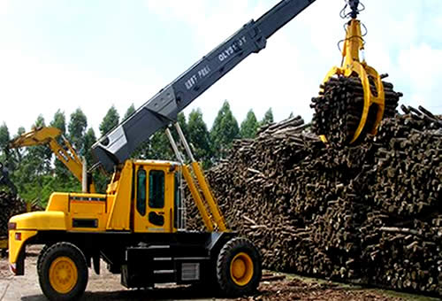 QLYS15DY吊運(yùn)機(jī)來(lái)回穿梭在木材儲(chǔ)運(yùn)場(chǎng)地