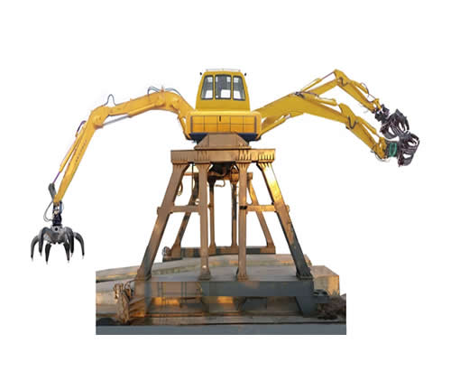 根據(jù)神華寧煤集團(tuán)凍煤卸車實(shí)際工況要求:我公司為其設(shè)計(jì)龍門軌道式三臂凍煤卸車機(jī),即在卸車機(jī)前端設(shè)計(jì)雙臂雙手配握取式振動器,握住車箱兩側(cè)箱板實(shí)施中頻振蕩,將輕微凍層及搭橋的煤炭卸下,且不損壞車體。同時在后面另設(shè)計(jì)一支單臂,配裝破冰抓手或液壓鎬,解決凍煤破冰及搭橋無法卸車問題。